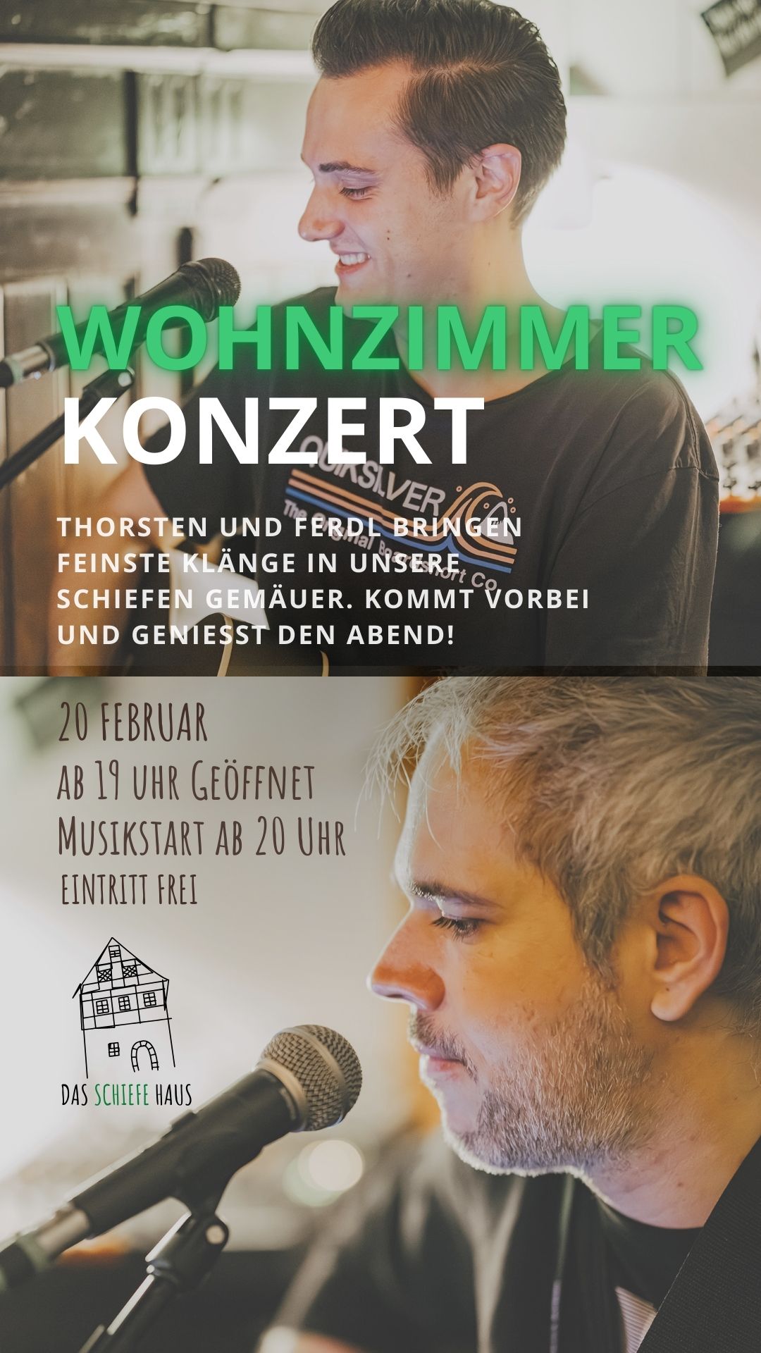 Ferdl und Thorsten bringen am Freitag feinste handgemachte Musik in unser schiefes Haus.